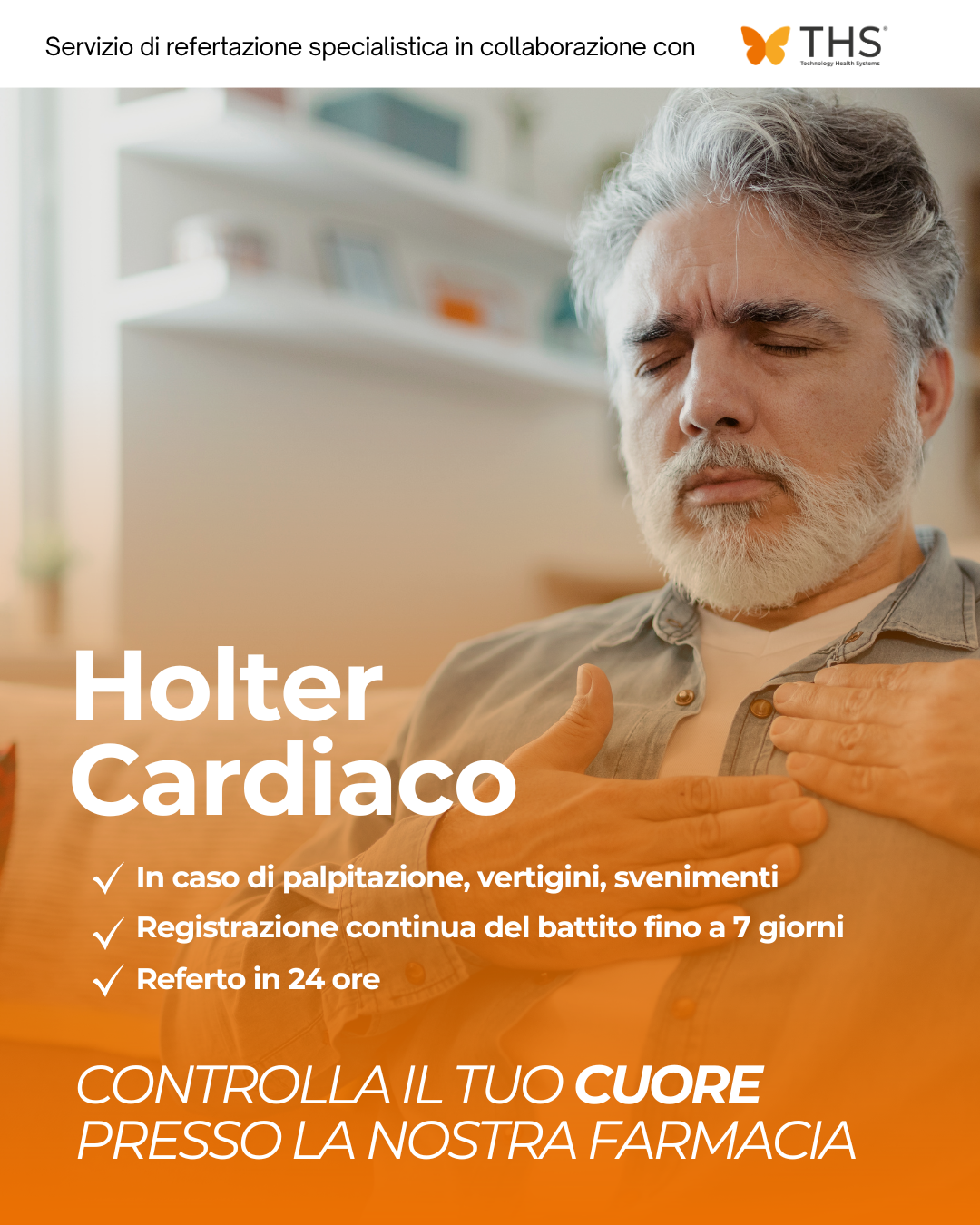 Grazie al sistema di telemedicina, puoi fare l’esame direttamente in farmacia. Una volta effettuato l’ECG noi invieremo i dati ad un centro medico specialistico dove un CARDIOLOGO referterà l’esame in tempi brevi
